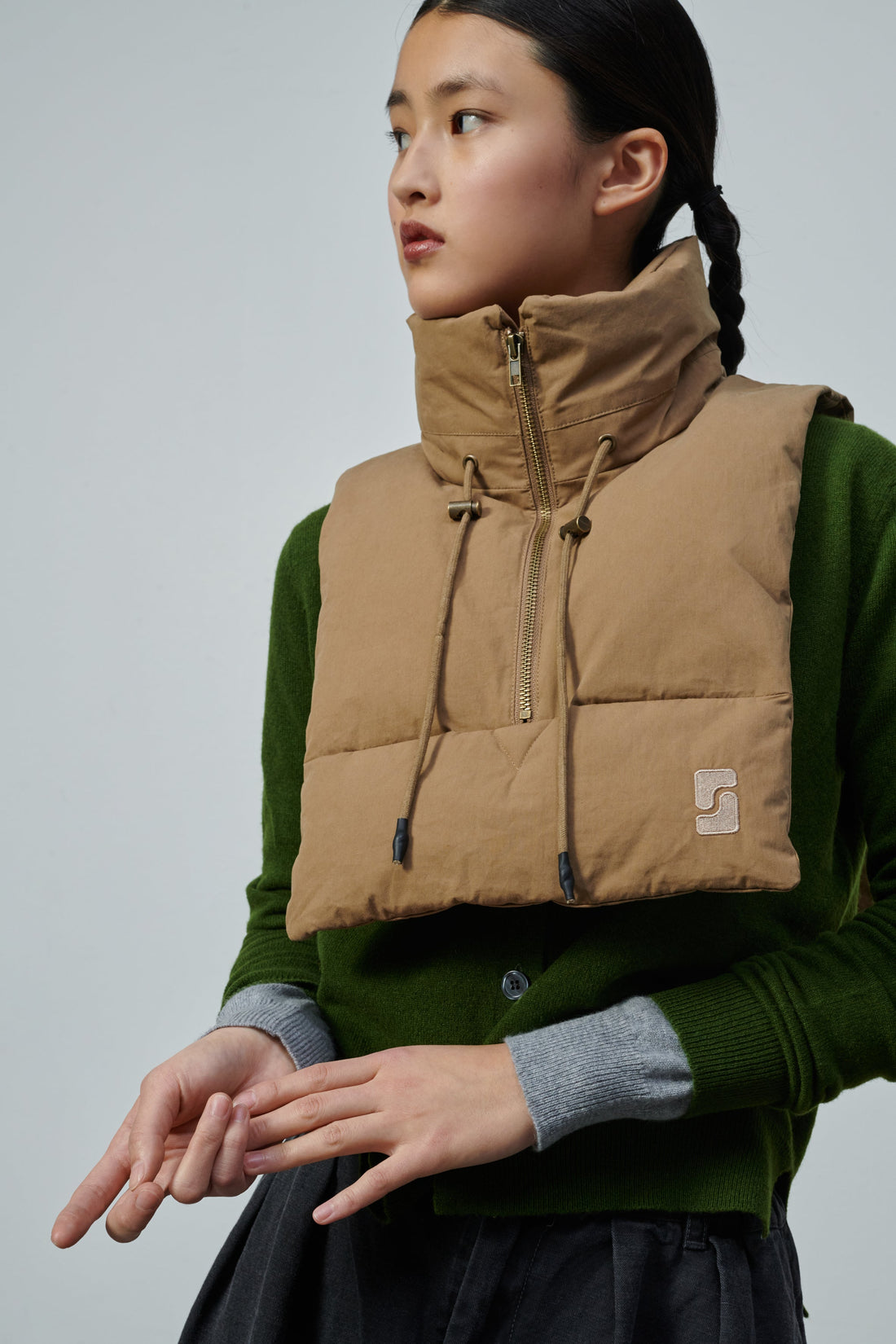 WETHER est un plastron-doudoune qui se zippe autour du cou pour garder bien au chaud. Pourvu d'un matelassage généreusement rembourré, il est ultra confortable.