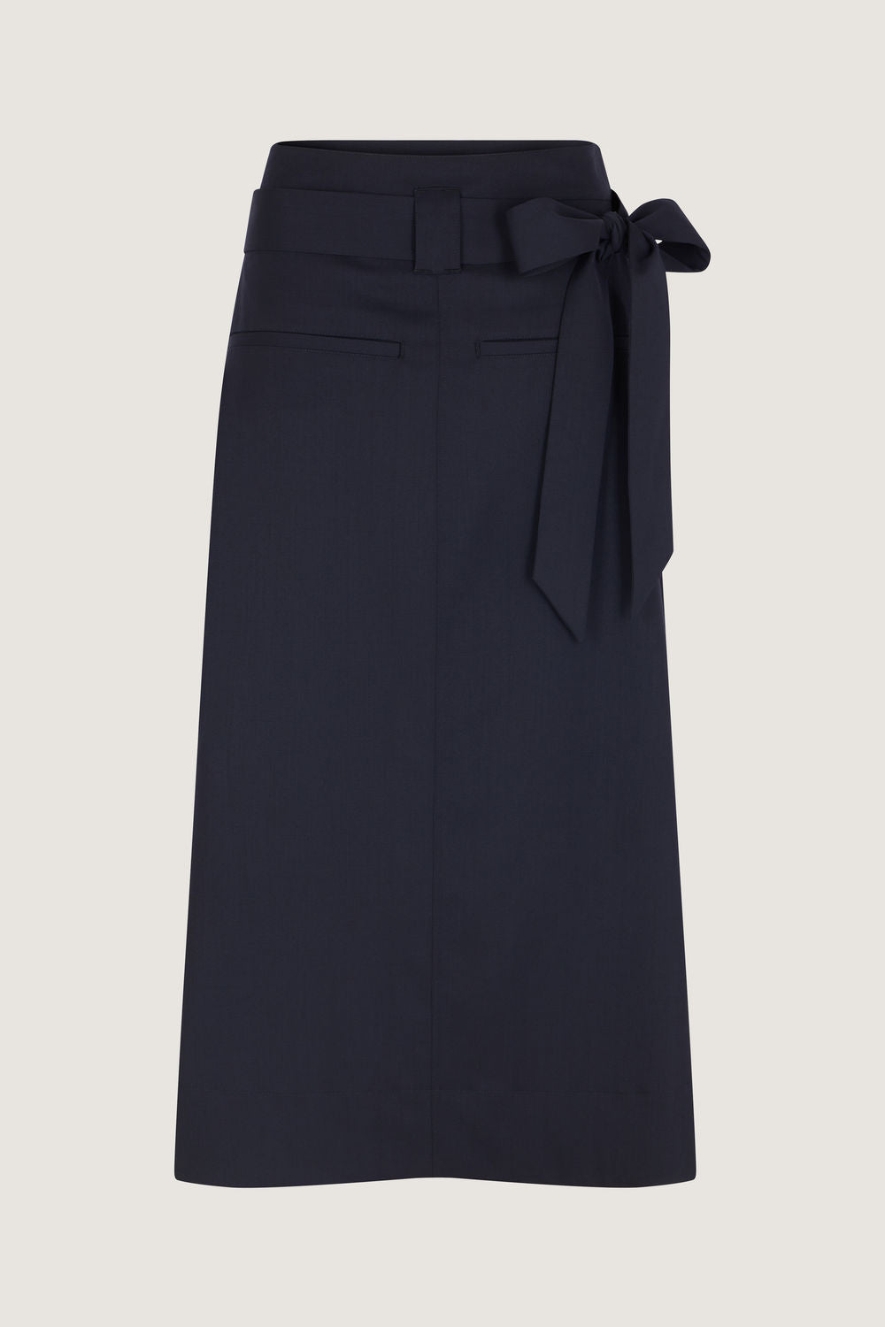 Jupe en gabardine de laine légère - Jupe longue et évasée- Ouverture zippée sur le côté et ceinture amovible- Deux poches passepoilées devant- Fentes aux côtés Cette pièce est certifiée OEKO-TEX Standard 100.