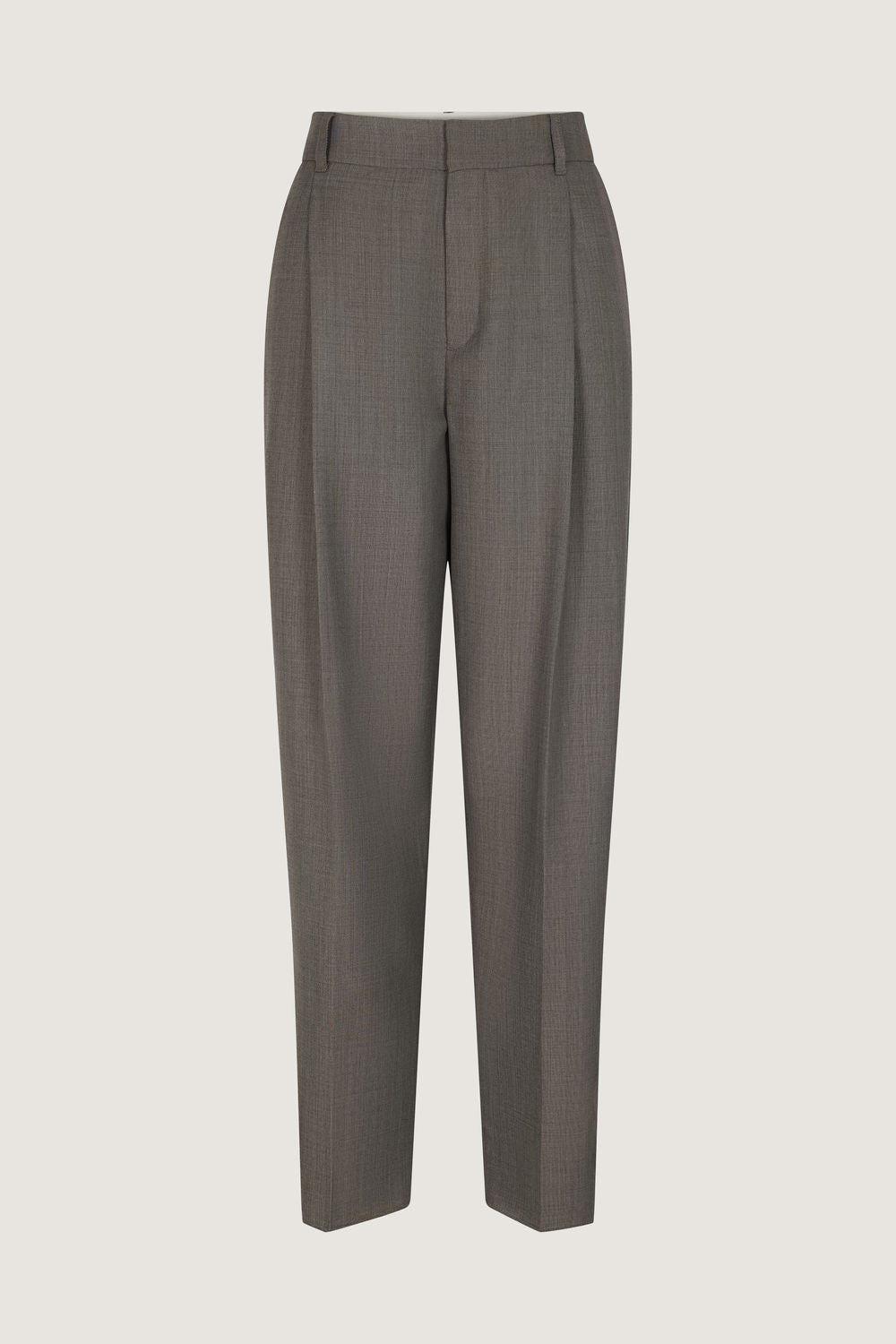 JOHN est un pantalon taille haute confectionné dans un lainage très fin et légèrement brillant (Super 120s).