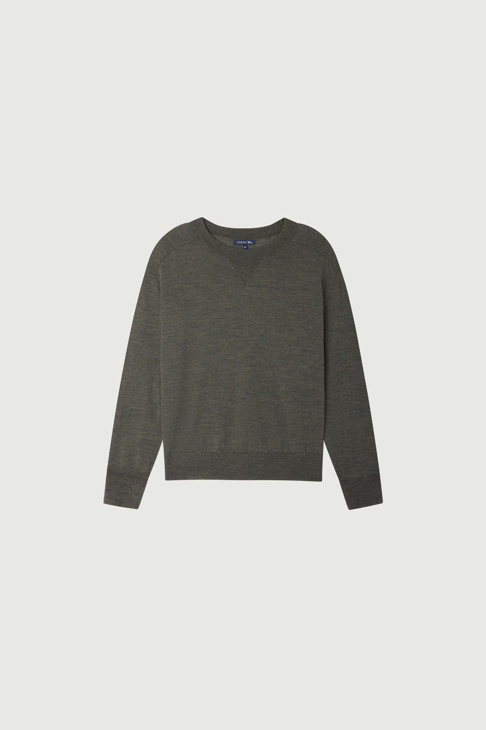 ACE est un pull à manches longues à la coupe droite et ample. Tricoté dans une laine mérinos fine et douce, il se porte à même la peau ou en superposition. Intemporel de nos collections il se décline cet hiver dans un ton de kaki foncé.