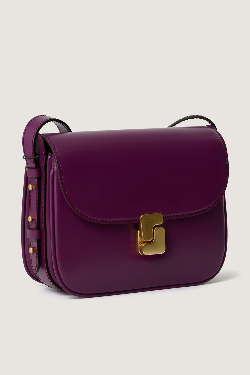 Sac monogramme "S" en cuir glacé pourpre pourpre