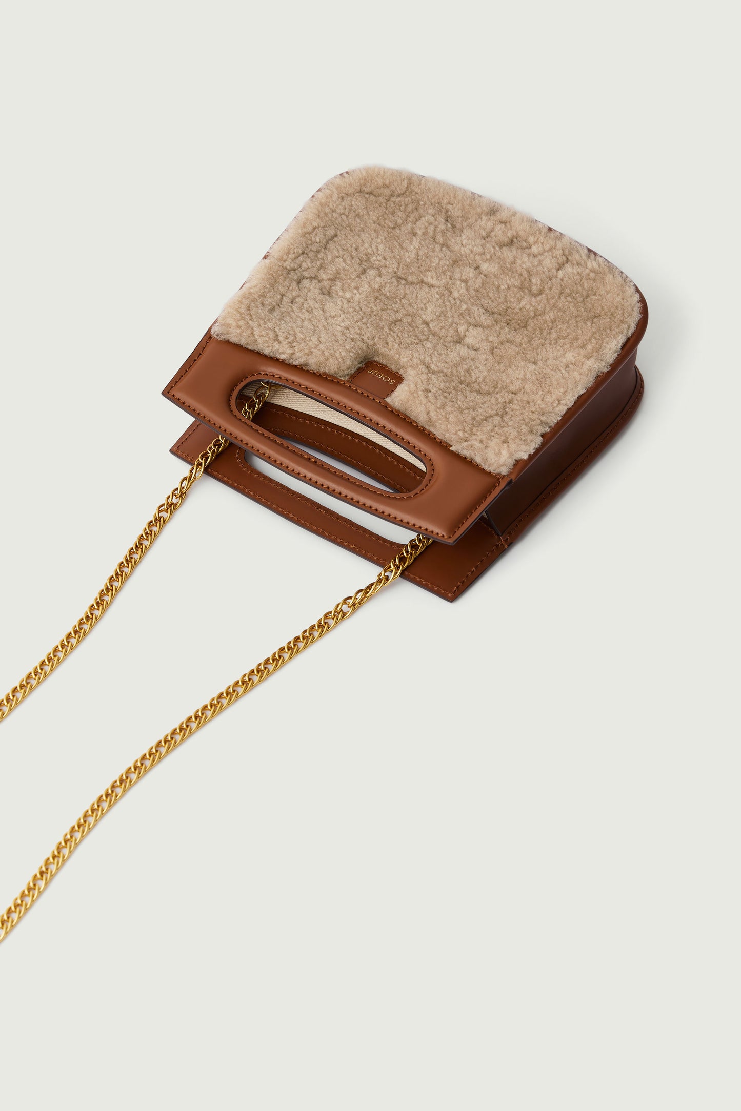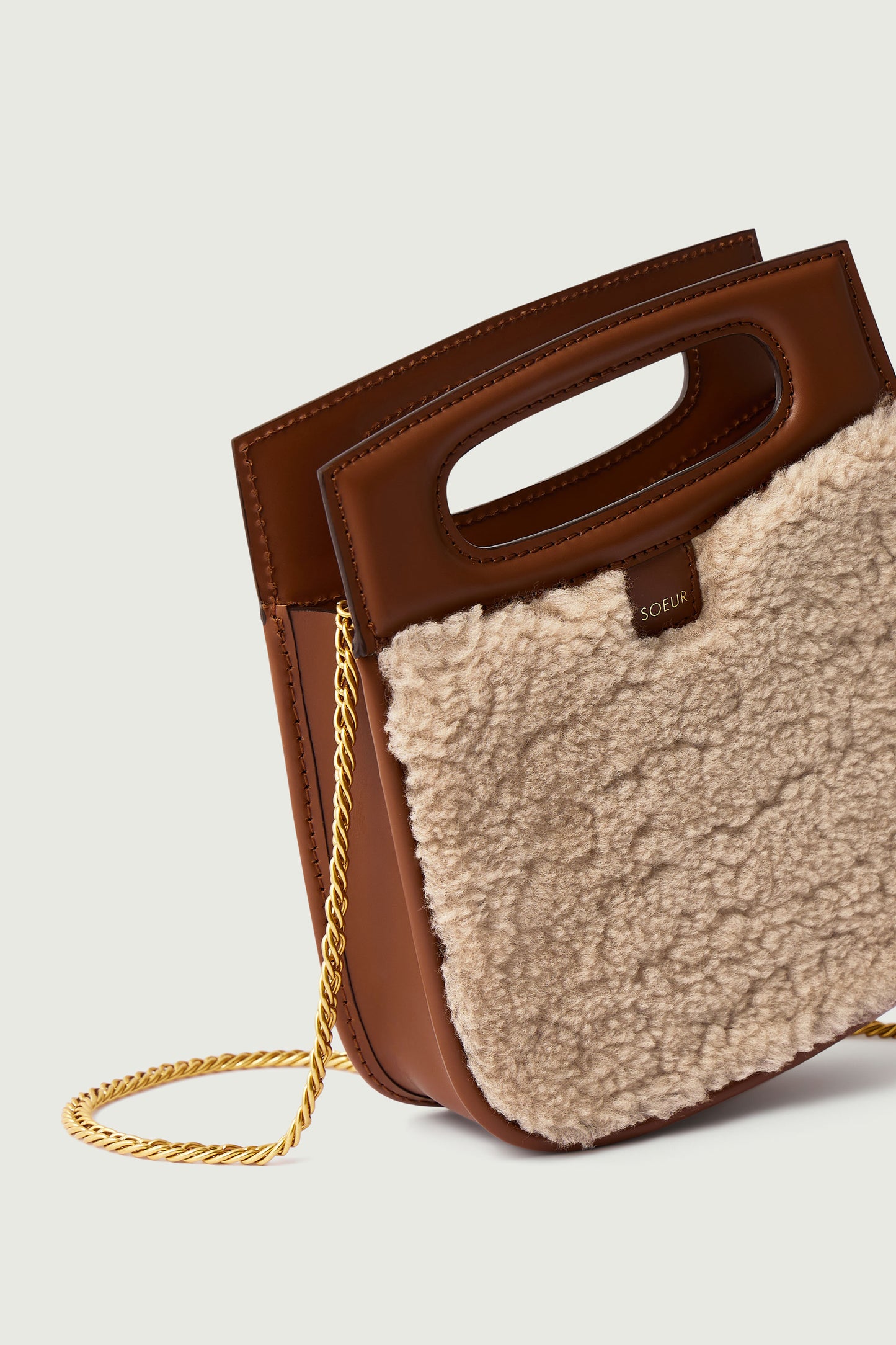 sac cheri mini Petit sac en cuir lisse naturel et shearling sable